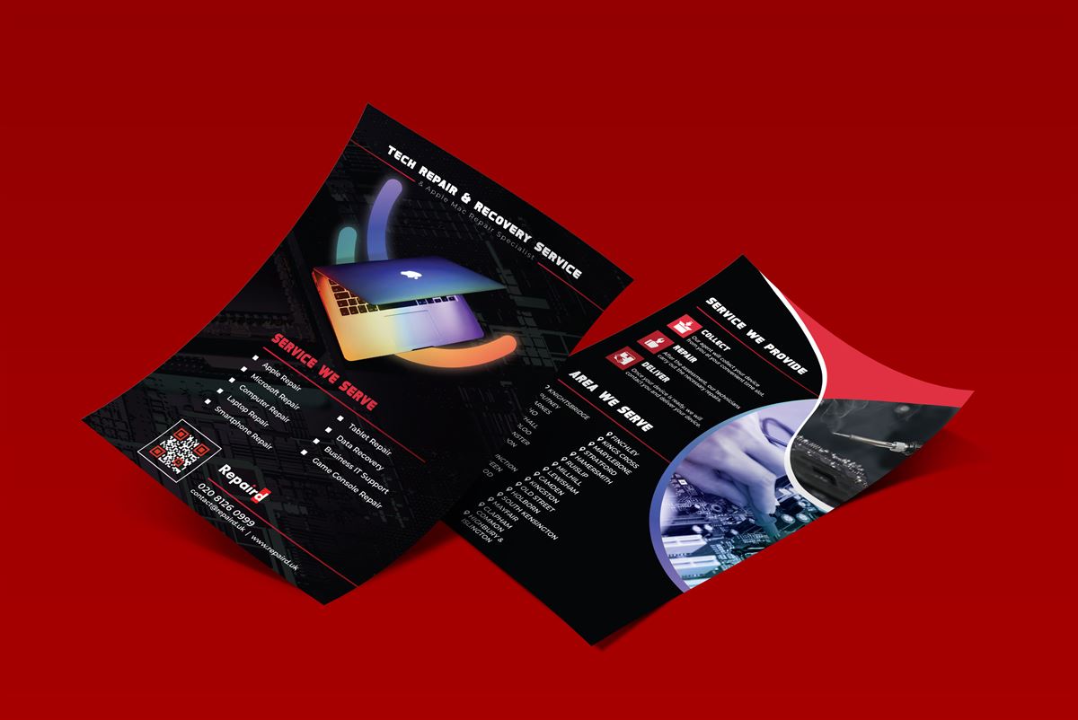 Leveraging our expertise in print design, we conceptualized and designed eye-catching flyers and brochures that effectively communicated Repaird's services, offerings, and unique value propositions to potential customers. Through compelling visuals, persuasive copywriting, and strategic placement of information, we aimed to capture attention, generate interest, and drive conversions for Repaird.